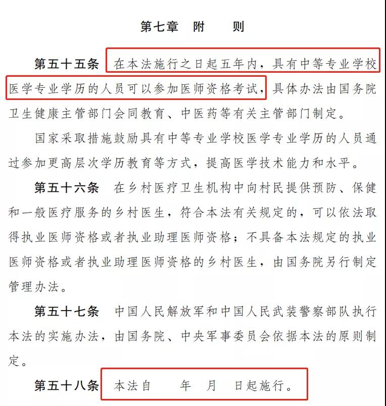 五年过渡期。新的医师法一经实施后,中专学历就完全不能报考了吗?中专学历怎么办?