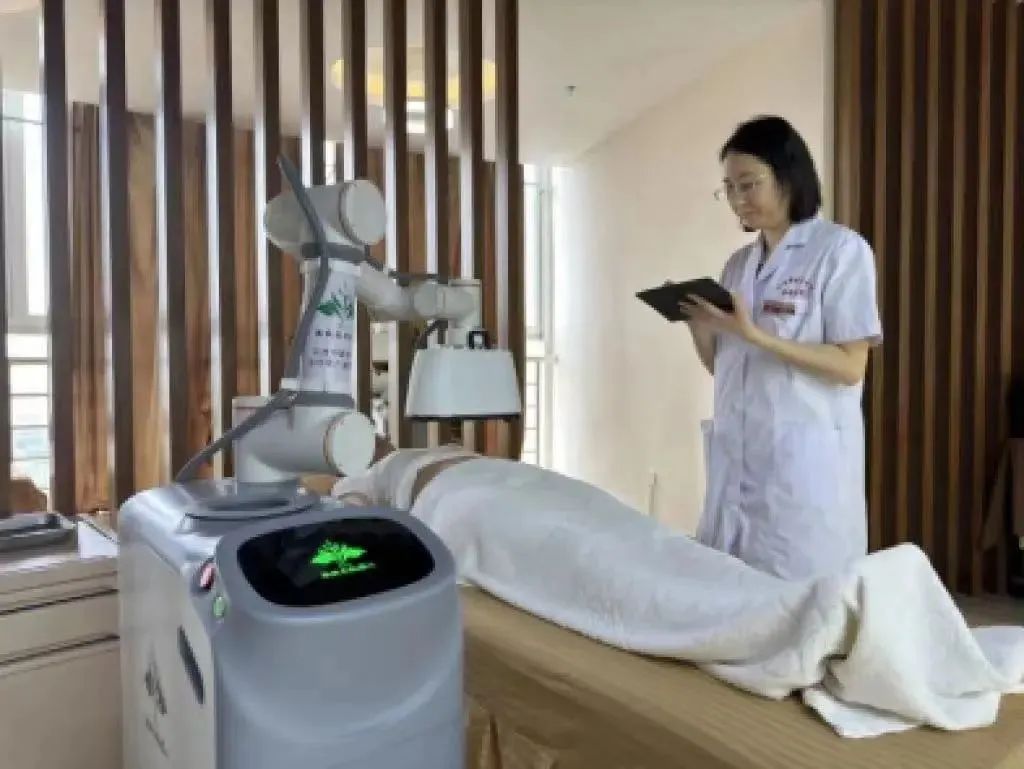在南京中医药大学,记者见到了一个看似十分普通的操作床,殊不知,操作床一侧配置的“机械臂”就相当于一位经验老到的“中医理疗师”。这款由南京中医药大学人工智能与信息技术学院研发的中医智能刮痧机器人,运用多模态融合、多标签学习、多传感器协同感知计算等前沿技术,实现了全流程闭环刮痧保健服务。不仅可以先通过智能面诊判断体质,确定需要刮痧的经络腧穴精准定位,多传感器实时感知刮痧参数进行动态优化刮痧方案。机械臂更换后,还可以满足针灸、推拿的需求。